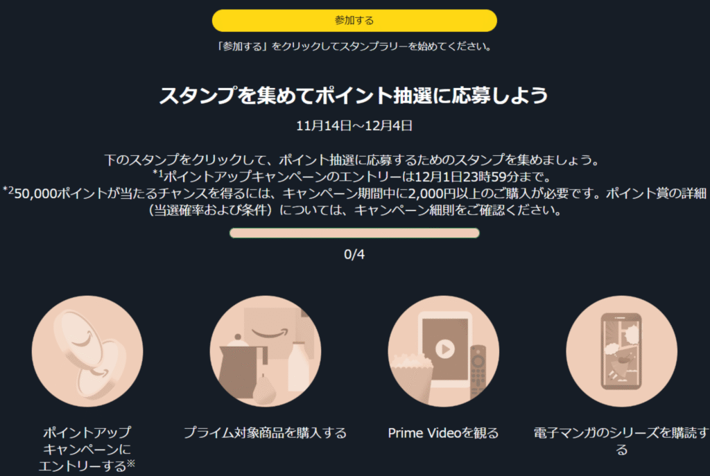 Amazonプライム会員への登録が完了、キャンペーンへのエントリーも完了したら最後に、スタンプラリーに参加しましょう。