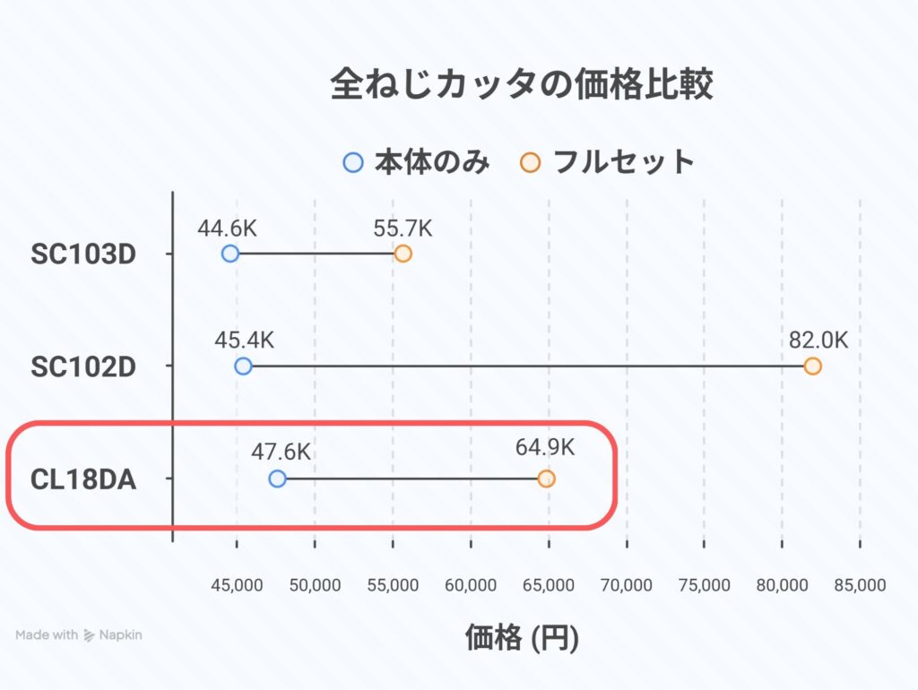※SC103D・SC102DはZKでケース付き価格。『CL18DA』はNNでケースなし価格。条件が異なる点に注意。