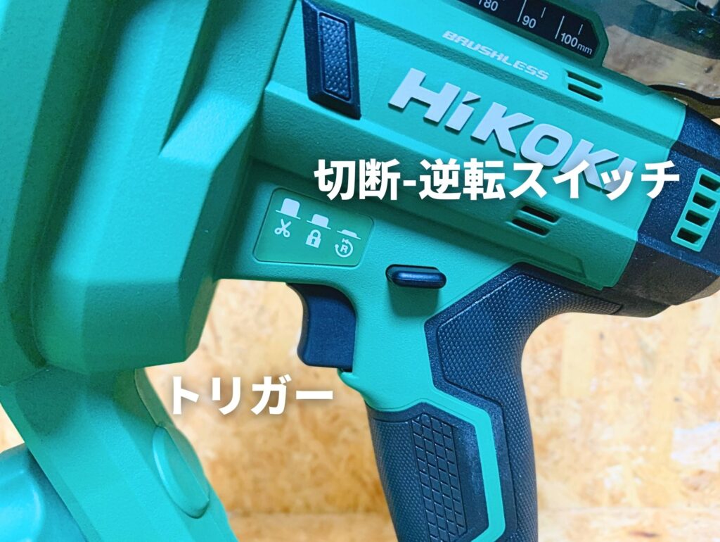 グリップ部に「切断・ロック・逆転」の3ポジションスイッチを装備。