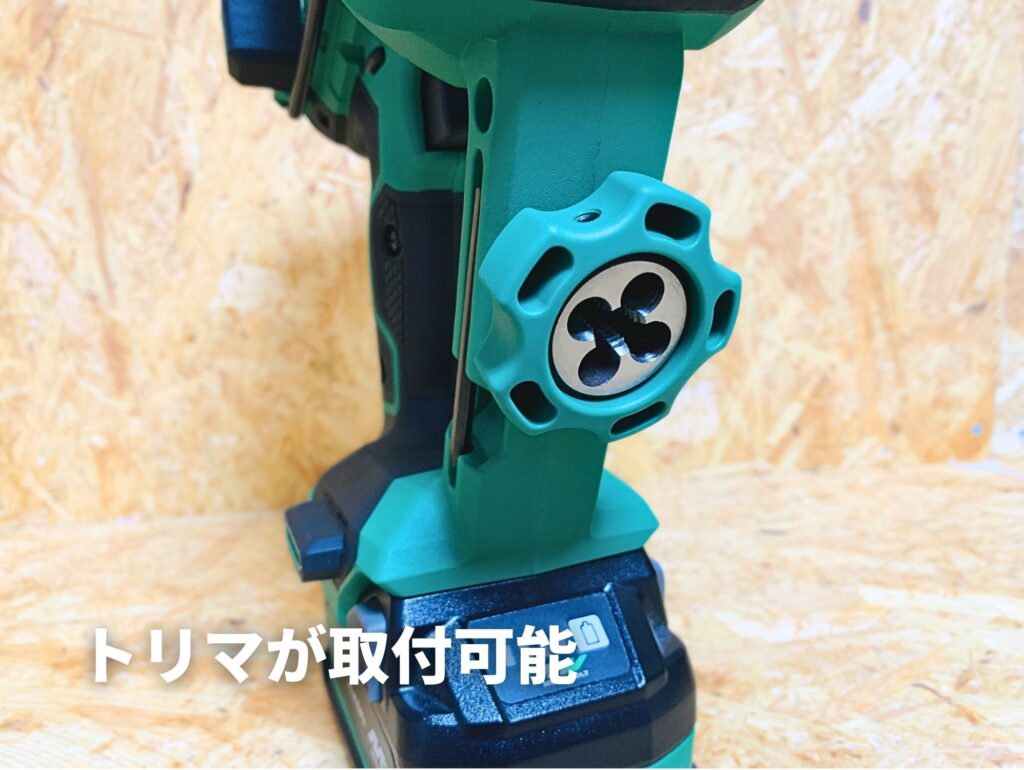 | 〇 | W3/8トリマ+本体収納ホルダー標準装備 | ✕ | 1充電作業量がSC102D(1,600本)より少ない |