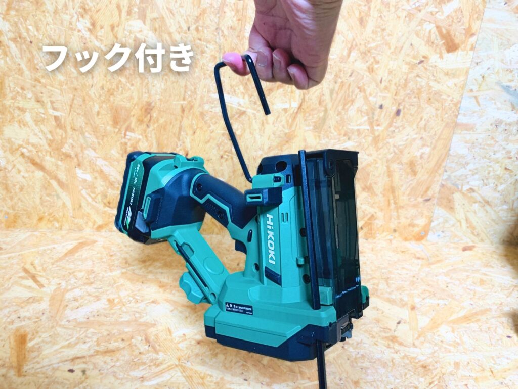 ワイヤーや単管に引っ掛けられるフック標準装備。