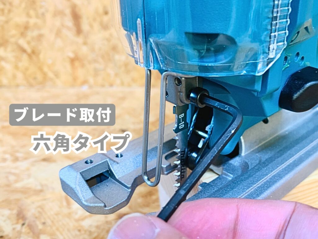 ブレードの取り付け・取り外しは六角レンチでグリグリする必要があるため、やや手間ですね。(六角レンチはジグソー本体に付属しています)