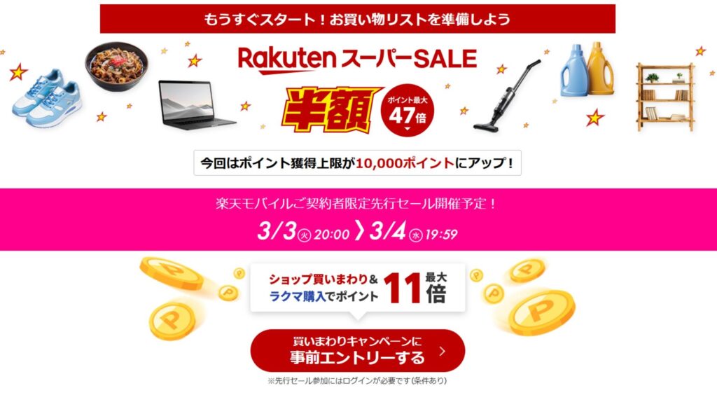 例年3月上旬に開催されている楽天スーパーセール。