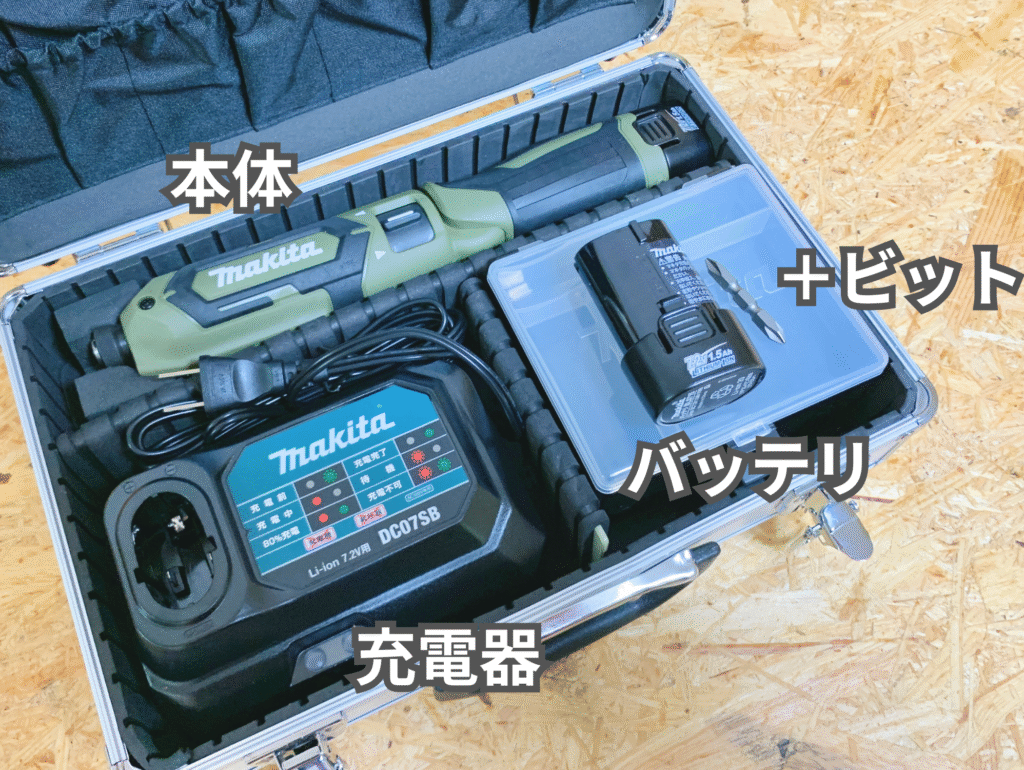 アルミケースは丈夫で現場向き。小物入れもあるので、ビットやネジを整理するのにも役立ちます。