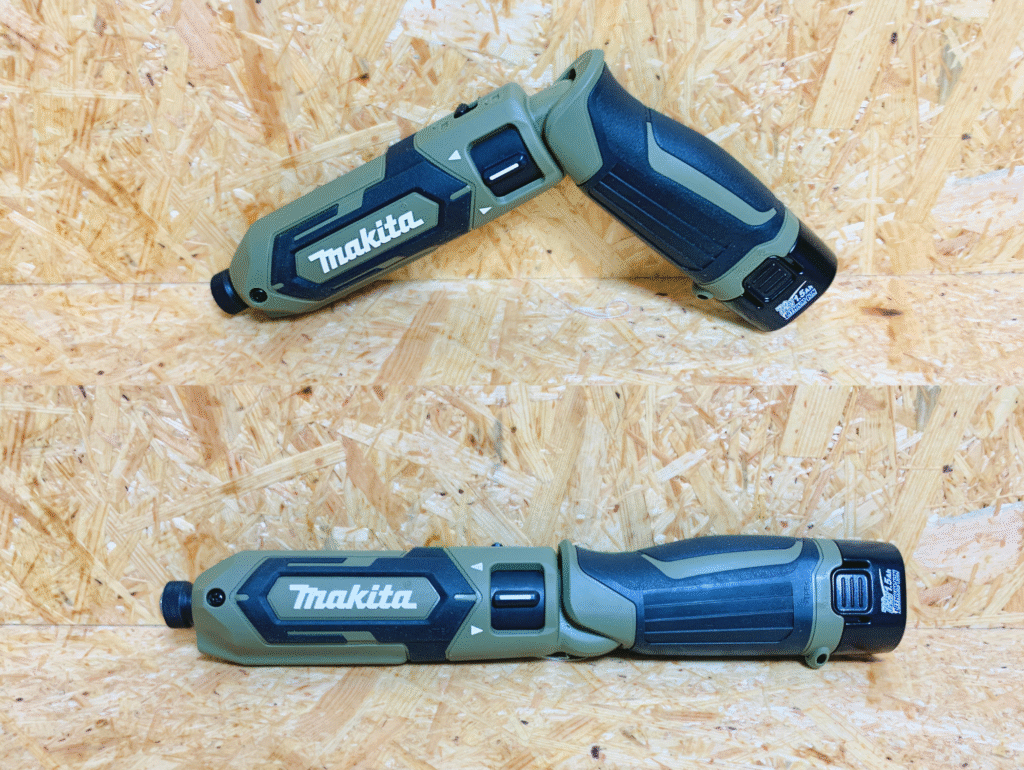 最初は「なんでトリガー式じゃないんだ?」と思いましたが、慣れると正逆切替がワンアクションでできて逆に便利。ただ、18Vインパクトと併用すると操作感の違いに戸惑うことも…