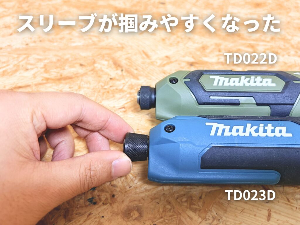 1日に何回もビットを替える現場では、ワンタッチビット装着とこのスリーブ形状改善だけで『TD023D』を選ぶ価値がありです。