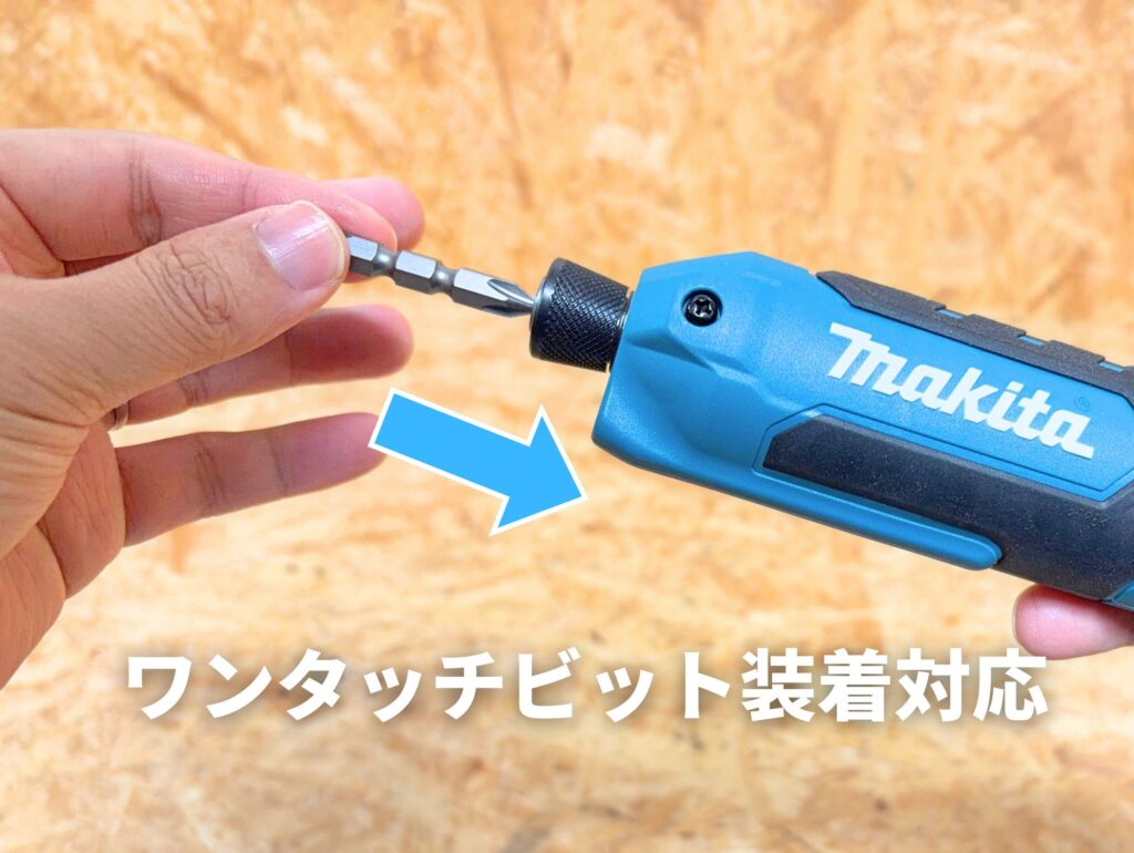 ビットを押し込むだけで「カチッ」と装着可能になり、「TD022D」のようにスリーブを引きながら差し込む二動作が不要になりました。